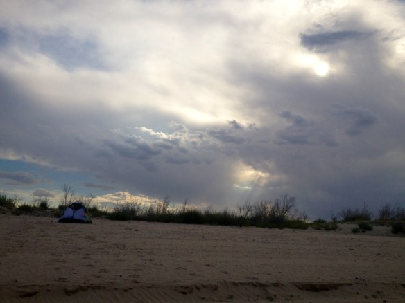 I usually don’t fall asleep very well when I’m camping. I’m too jumpy and nervous. As 1:00 am rolled around and I was awake for the fourth time, I finally pulled out Mike’s sleeping bag and threw it over me. Snuggled into that, I fell asleep and stayed asleep. I woke up to an empty tent and a beautiful sunrise (ish).